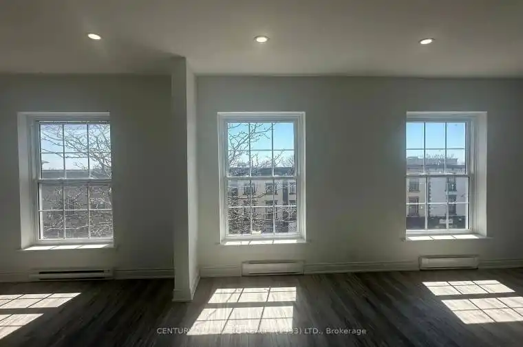 Vacant. Immediate Occupancy! One street up from the Marina, Esplanade, Boardwalk, Beach & Lakefront in “Ontario’s Feel Good Town.” Contemporary 1BR Studio Apt. on 3rd Floor overlooking Downtown in the heart of Cobourg’s tourist, dining, shopping district. Newly-renovated unit has 6ft windows. Transom windows between bedroom & living room. Modern decor/kitchen/baths. Luxury Vinyl Laminate Flooring. Front entrance on King St W walks down to the best shopping, dining & entertainment options. Back entrance has stairs from the private parking area. VIA Station 1 blk north for commuters or day trippers. 100 km to Toronto along the 401 or 407 Route. Laminate flooring, glass showers, newly renovated 1.5 years ago. Custom updates in a brick, Heritage building. Could be a great alternative getaway to a “weekend cottage” by the beach/marina. Tenant pays Electric. Water & Parking included. Coin Laundry in bldg. **EXTRAS** New flooring, tiling, lighting, Baths, Glass Shower, Fixtures. Freshly painted. Note: no elevator. Must supply Credit Check, Employment letter, References, Pay stubs and Rental application. First and Last required.