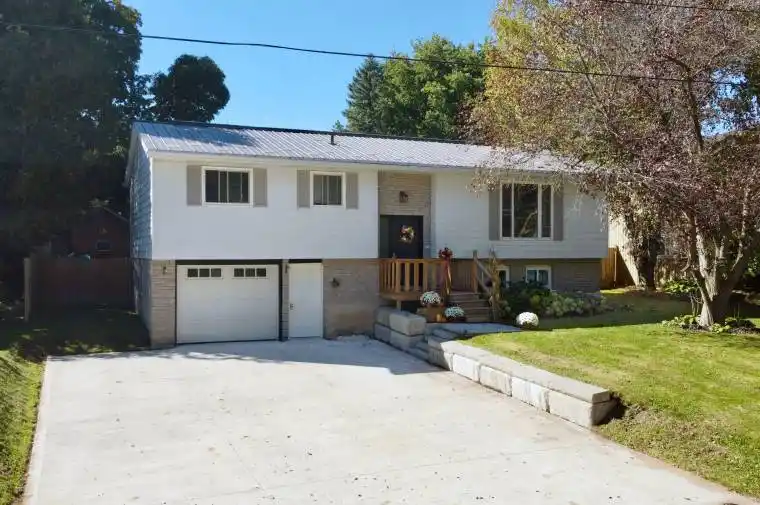 Welcome to this raised bungalow in the quiet community of Riversdale, situated on a generous 66 x 132 lot. With an attached garage, concrete driveway, and a large fully fenced yard, this property offers great space both inside and out. The main level features an open-concept kitchen, living, and dining area, perfect for family living or entertaining. The kitchen is equipped with appliances (new Samsung dishwasher 2025), an island with overhang for barstool seating, and a dining area with a walkout to a spacious deck overlooking the backyard. Three comfortable bedrooms and a full bathroom complete this level. The finished basement provides additional living space with a cozy rec room warmed by a wood stove, plenty of storage, garage access, and laundry facilities. A 10 x 31 shed with hydro out back offers an excellent workshop or space for toys. Notable updates include the concrete driveway and retaining wall, vinyl flooring in the lower level and bedrooms, a steel roof (approx 2015), and updated windows for peace of mind. The home is equipped with a full water treatment system and is conveniently located just 20 minutes from Bruce Power. Combining functionality and charm on a great lot, this home is ideal for families, first-time buyers, or those looking for extra outdoor space.