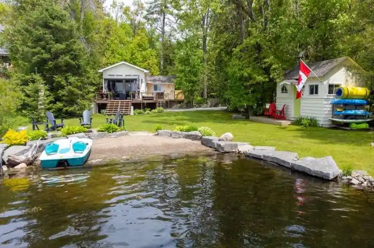 Welcome to your own private retreat on beautiful Lower Buckhorn Lake. This fully turn-key 2-bedroom cottage offers 173 feet of pristine shoreline with a wade in sandy beach area – on a spacious, level lot with landscaped grounds and stunning views. Designed for relaxed living, the open-concept layout features wide plank flooring, a wood stove, and a bright, water-facing living room that brings the outdoors in. The kitchen and 3-piece bath provide convenience, while most furnishings and contents are included. Outdoors, the property truly shines. A shallow, sandy beach provides safe, family-friendly swimming, while a private dock offers space for boating, lounging, or fishing. The yard is framed by natural armour stone for a polished, timeless look, and there is ample room for outdoor games, barbecues, and evening gatherings. A cozy bunkie adds additional guest accommodations, making this retreat perfect for hosting family and friends. Located on the Trent Severn Waterway, this property offers endless opportunities for boating and exploration. Just minutes from the village of Buckhorn and under 40 minutes to Peterborough, the cottage provides both seclusion and convenience. Whether you’re seeking a weekend getaway, a seasonal retreat, or an investment opportunity, this property delivers.With its turn-key convenience, family-friendly shoreline, and prime location, this Lower Buckhorn Lake cottage is a rare opportunity to own a slice of cottage country magic.