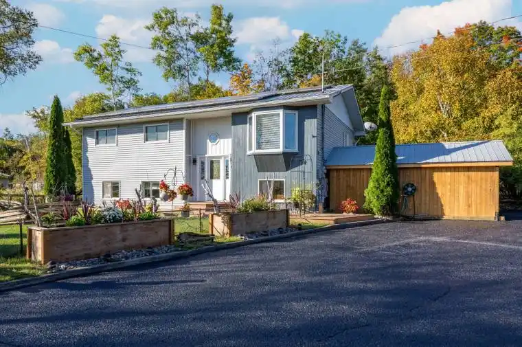 THIS 4 BEDROOM, 2 BATHROOM HOME WITH OVER 2,200 SQ. FT. OF FINISHED LIVING SPACE PERFECTLY COMBINES MODERN COMFORT, ENERGY EFFICIENCY, AND VERSATILITY. SOLAR PANELS ON A NET ZERO AGREEMENT GENERATE MOST OF THE HYDRO USED, WHILE A GENERAC GENERATOR KEEPS THE HOME FULLY OPERATIONAL.INSIDE, YOULL FIND A BRIGHT MAIN LIVING AREA, A WALK OUT PRIMARY SUITE WITH OFFICE, UPDATED BATHROOMS, AND A FULLY FINISHED LOWER LEVEL FEATURING A FAMILY ROOM WITH FIREPLACE, RECREATION ROOM, AND GUEST BEDROOM. THE 4-SEASON ROOM OFF THE PRIMARY BEDROOM PROVIDES A RELAXING RETREAT YEAR-ROUND CURRENTLY USED AS AN OFFICE SPACE, BUT ITS USE IS LIMITED ONLY BY THE IMAGINATION.THE PROPERTY ALSO FEATURES A LARGE WORKSHOP, CURRENTLY SET UP AS A GYM BUT EASILY ADAPTABLE FOR ANY USE, AND A 40 SHIPPING CONTAINER FOR EXTRA STORAGE. ADDITIONAL HIGHLIGHTS INCLUDE 40 AND 20 CARPORTS, A FULLY FENCED FRONT YARD, AND A BEAUTIFUL BACKYARD OASIS, OFFERING SPACE FOR HOBBIES, ENTERTAINING, OR FAMILY ACTIVITIES.CONVENIENTLY LOCATED ON A MAIN ROAD BUS ROUTE & CLOSE ACCESS TO HIGHWAY 400. JUST MINUTES TO COLDWATER, 20 MINUTES TO MIDLAND, 25 MINUTES TO ORILLIA & BARRIE, AND 1 HOUR TO TORONTO, THIS HOME OFFERS A PERFECT BLEND OF CONVENIENCE, FUNCTIONALITY, AND LIFESTYLE. BOOK YOUR PERSONAL TOUR TODAY!