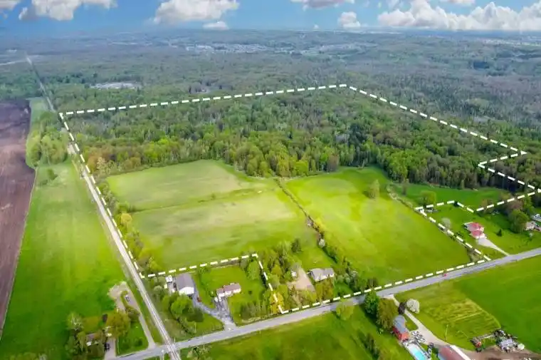 OVER 3,000 SQ FT BUNGALOW FEATURING IN-LAW POTENTIAL NESTLED ON 83.47 ACRES WITH WORKABLE LAND & MINUTES TO BARRIE! Nestled on an expansive 83.47 acres of fields and forest, this spacious bungalow offers a very private setting just a 5-minute drive from Barrie, close to golf courses and ski hills. Boasting agricultural and environmental protection zoning, the property features a diverse assortment of trees, including cherry, Cortland apple, lilac, crabapple, pear, McIntosh apple, and more. Approximately 35 acres of the land are dedicated to workable fields currently used as hay fields, while scenic walking trails wind through the forested areas, providing the chance to enjoy nature at its finest with an abundance of local wildlife. Step inside to discover over 3,000 square feet of finished living space, featuring hardwood and laminate flooring throughout most of the home. The generously sized eat-in kitchen presents ample cabinetry, stainless steel appliances, and a mosaic backsplash. The primary bedroom is complete with a walk-in closet and ensuite, while the main bathroom boasts a large soaker tub and separate shower. Descend to the finished basement, which features a separate entrance, in-law suite potential, and a bathroom rough-in. Enjoy the spacious covered back porch and patio area overlooking the tranquil property. Updates include newer shingles, attic insulation, a sump pump, and appliances. Multiple 100-amp electrical panels, a water softener, and a drilled well ensure convenience. With the included 8 x 10 shed for additional storage space, ample driveway parking for up to 20 vehicles, no rental items, and low property taxes, this property offers a rare opportunity to embrace country living without sacrificing convenience.