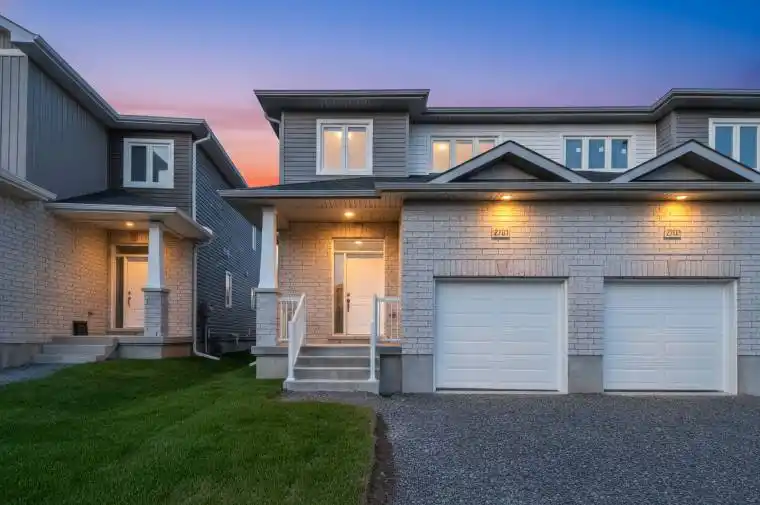 Quick closing available! Welcome to your new standard of living: Sands Edge, proudly presented by Marques Homes. Step into “The Samuel,” a meticulously designed semi-detached home that offers an impressive 2,055 square feet of sophisticated living space, complemented by a long list of high-quality features as standard. This home welcomes you with an open and airy main floor, bathed in natural light through numerous windows and enhanced by soaring nine-foot ceilings. The space is thoughtfully finished with resilient luxury vinyl plank and ceramic tile flooring, alongside abundant pot lighting for a modern and inviting ambiance. The heart of the home is a breathtaking white kitchen boasting a spacious chef’s pantry, elegant wood cabinetry, and gleaming quartz countertops with an undermount sink. Attention to detail is evident in the soft-close doors and drawers, under-cabinet lighting, and exquisite crown moulding that adds a touch of sophistication. Upstairs, you’ll find a practical laundry area, two well-appointed full bathrooms, and three generously sized bedrooms. The primary suite will impress, featuring a walk-in closet and a luxurious four-piece ensuite bathroom with a glass-enclosed tiled shower and a large vanity topped with quartz countertops. The home also offers a fully finished basement with high ceilings, thoughtful pot lighting, and a three-piece rough-in for future bathroom expansion. Exterior highlights include a paved driveway, a fully sodded lot, and rear fencing. Located in a prime location, Sands Edge is moments away from Kingston Transit bus stops, the convenience of Highway 401, scenic parks, a variety of everyday shopping amenities, and so much more. Don’t upgrade for quality; build where quality is standard. Experience the Marques Homes difference today!