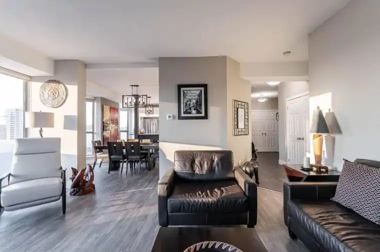 Enjoy The Gorgeous View Of Sunsets!! Once you come in you wont want to leave. Great west Hamilton location. Panoramic views of city, escarpment and lake Ontario. Beautiful open living, dining and kitchen area with 9′ foot ceilings. Kitchen , baths and most flooring renos done since 2020.Kitchen Island 3′.5″ x 8’Accent LED lighting throughout. Rap around balcony off livingroom.2nd Balcony from primary bedroom with ensuite bath. Furnace and central air Combo unit replaced in 2020. One excusive underground parking spot P2 #45.All windows and sliding doors replaced March 2025 Including some Remote Blinds. A must to view.