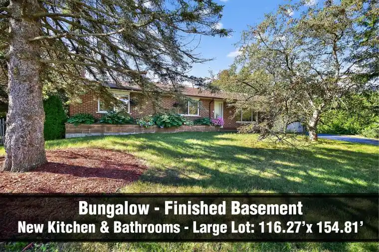Charming and meticulous, brick Bungalow with separate entrance finished basement, two car garage and very private driveway on oversized 0.41 acre very private southern exposure lot that is conveniently nestled in the very desirable Hamlet of Ballantrae within minutes to all amenities. The user friendly cozy floor plan offers 3 bedrooms, 2 renovated baths, (main bath with heated floor) sparkling white renovated kitchen, dining room and large living room. The finished basement with separate entrance offers a large family room with fireplace, huge recreation room with built-in speakers and spacious laundry room. The breathtaking very private back and side yards with 22′ privacy hedge, offers multiple areas for recreation activities. This perfect quiet rounded corner lot offers rare seclusion from next door neighbour homes. Welcome to this lovely bungalow on an oversized lot in a desirable neighbourhood!