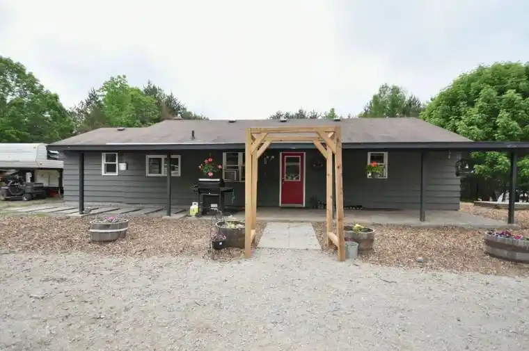 Welcome to 2286 Flos Road Ten in Springwater. This single story 3 bedroom home is situated on 4.43 beautiful acres. Features a slab foundation, level entrance, mudroom open concept space and privacy. A quick commute to Barrie, Mount Saint Louis, Horseshoe Valley, Orr Lake, and more. Perfect for those who have a farm animal or two, the side property is fenced in to accomodate animals and is currently home to pet cows. Enjoy a large 30 X 40 soft top heated shop used to store your toys or to work on your vehicles. The home rests in the middle of 2 cleared acres enhanced with a circular driveway and a large backyard to enjoy fires sports. You can be one with nature in the wooded forest behind you while drinking your coffee on the newly built 8×12 deck. Your vision can come to life on this private property enhancing the home to fit your style.