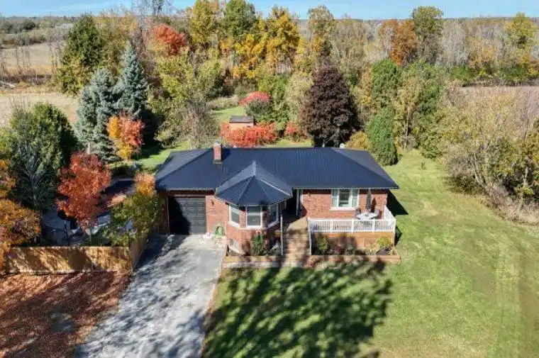Welcome to this lovely all-brick bungalow, boasting an impressive renovation and offering an attached one-car garage, situated on more than an acre of beautiful country landscape. Fully refurbished to outstanding standards, this home invites you to enjoy immediate occupancy and indulge in the grace and charm of countryside living. Step onto the newly installed deck and into a home that bears testimony to high-quality craftsmanship in every nook and corner. At the heart of the home is a well-lit eat-in kitchen, showcasing an impressive waterfall island and ample cupboard space. Adjacent to the kitchen lies a spacious separate dining room featuring large windows that fill the area with blue sky and natural light. The large Primary bedroom serves as a private haven, complete with a three-piece ensuite and a generous closet. An additional bedroom and a four-piece bathroom complete the array of rooms on the main floor. A descent to the fully finished walk-up basement reveals a cozy rec room with a woodstove, a practical utility room offering an abundance of storage space and easy garage access, as well as two comfortably-sized bedrooms and an additional three-piece bathroom. Outside, bask in the serenity of the countryside under the gazebo, while enjoying long leisurely days in the inground saltwater pool. The abundant yard serves as the perfect space for social gatherings or quiet solitude. Inside and out, this home offers a cozy sanctuary underpinned by the tranquility of the idyllic country setting – a beautiful retreat for enjoyable living. Woodstove ’24, Heat pump ’23, Metal roof ’24, Pool liner ’22, Pool pump ’24, Salt cell ’25, Kitchen ’23, and so much more!