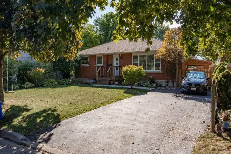 YOU WONT BE DISAPPOINTED. This beautifully updated bungalow has so much to offer. The moment you walk in you will feel the warmth and tranquility of the calming colours. A coat closet is located at the front entrance for your convenience! This home has a semi open concept and offers a spacious living room with a fireplace, engineered flooring and lots of natural light from the large windows. Too much light? No problem, these windows have California blinds! There are 2 bedrooms, a walk in closet and a fabulous renovated bathroom with a large walk in shower. The renovated (2019) galley kitchen is bright with white cabinetry and has quartz counters. The appliances stay and it has a gas stove, and built in microwave plus a huge window above the double sinks, overlooking the fabulous fully privacy fenced yard. Easy to keep an eye on the kids and animals! There is a side entrance under the carport that would be perfect if you wanted to use the lower level as a granny flat or student housing! There is an extra bedroom and updated bath with shower, large family room, bonus room and laundry area. The bonus/utility room could easily become a kitchen and VOILA, you have your second unit! You will be the envy of your friends and family when you host parties on your huge deck with lots of seating and private HOT TUB! Loads of outdoor storage with 3 newer sheds! Play all kinds of lawn games in your fully PRIVACY fenced yard that is large enough for a pool! Updates include AC 2022, furnace +/- 12 yrs, windows +/- 12 yrs, roof 2011, gutter guards. Since 2023 updates included carport, privacy fencing, rear deck, hot tub, bedroom floors, patio areas and painted. Note: exterior measurements from MPAC, interior measurements using Cubicasa. Walk to Pen Centre and Sobeys Shopping Mall as well as trails!