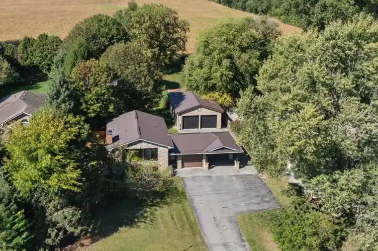 A one of a kind property! Spacious raised bungalow with atached garage, carport and a huge detached shop on over half an acre, backing onto peaceful farm fields in Mount Brydges. The well-maintained home offers 2+2 bedrooms, a beautiful 5-piece bath, and bright living spaces throughout. The main level features a large living room with hardwood floors and a wall of windows, plus a kitchen with concrete counters, gas stove, pantry, and walkout to a sunny side deck. The lower level adds two additional bedrooms, a family room, exercise area, and a dedicated laundry space. Outside, enjoy the large patio, mature trees, and plenty of green space for kids or pets to play. The impressive detached shop is fully equipped with hydro, water, heat, a 2-piece bath, fridge, and stove, ideal for a workshop, hobby space, or the ultimate hangout. Additional features include an attached single-car garage and a tandem carport for two vehicles. Quick and easy access to Highway 402, this home is located just minutes from Strathroy and London. Mount Brydges is a growing community with small-town charm, great school options, local shops, and parks, perfect for families and commuters alike.