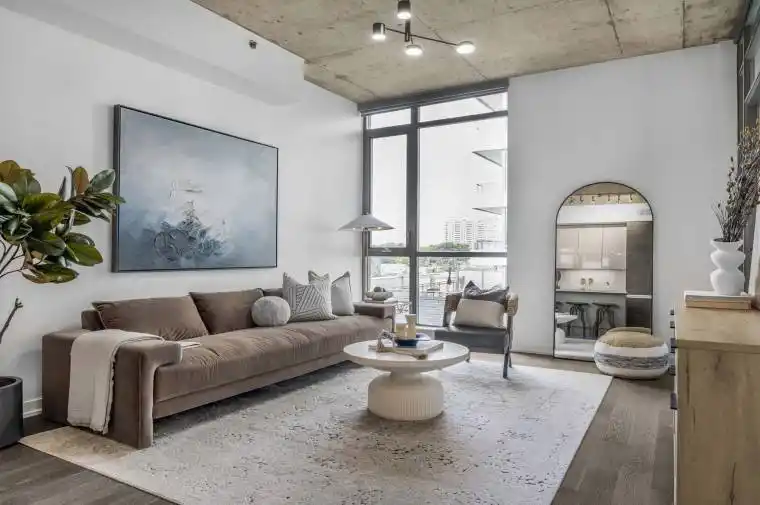 Boutique Living in the Heart of West Queen West. Welcome to Suite 615 at 8 Gladstone, a stunning one-bedroom residence offering 630 sq. ft. of impeccably designed living space. With soaring 10-foot exposed concrete ceilings and floor-to-ceiling windows, this open-concept suite is bathed in natural light and exudes sophisticated urban character straight from the pages of a design magazine. Every detail has been thoughtfully curated, including a brand-new custom kitchen island, a rare and sought after upgrade that maximizes both culinary functionality and entertaining space. Additional enhancements include designer light fixtures and custom closets, seamlessly blending form and function with elevated style. Step onto your private balcony to soak in the city’s vibrant energy, or retreat indoors to a space that feels equally refined and inviting. At 8 Gladstone, modern conveniences extend beyond your suite. Enjoy amenities such as visitor parking, an elegant party room, and a dedicated dog wash station for your furry best friend, truly the perfect blend of boutique luxury and urban sophistication. Positioned in one of Toronto’s most dynamic neighbourhoods, you’re just steps from Trinity Bellwoods Park, Ossington, Liberty Village, Dundas West and Little Portugal. With cafes, restaurants, shops and grocery stores (Metro at your door, FreshCo across the street) plus the Queen Street streetcar at your doorstep, you are perfectly connected to everything the city has to offer.