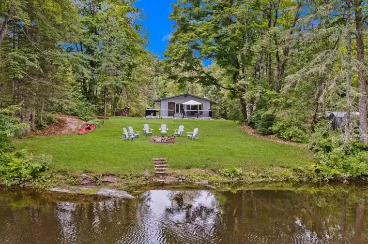 Absolutely stunning all year round and private 80-foot riverfront cottage on the beautiful Head River, offering the perfect blend of relaxation and adventure. This charming 2-bedroom, 1-bathroom retreat features an open-concept living space with vaulted pine ceilings, large windows, and a wrap around deck that provides breathtaking views of the water. The interior is warm and inviting, while the spacious outdoor area is perfect for entertaining, with a built-in bar, firepit, and plenty of room to host friends and family. Surrounded by nature, the property offers exceptional fishing, boating, kayaking, swimming, and even a rope swing for summer fun. Tucked away on a large lot along a quiet private road, it provides incredible privacy and serenity. Just over an hour from the GTA, this one-of-a-kind getaway is ideal for those looking to escape the city and embrace peaceful riverside living. Whether you’re seeking a seasonal retreat or a weekend escape, this cottage is sure to impress.