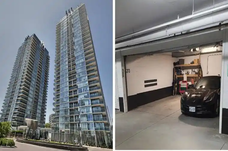 An exceptional opportunity to own a one of a kind luxury condo featuring a rare and highly sought after private double car garage, fully EV ready with hydro rough in. This spacious and thoughtfully designed 2 bedroom plus a large den, 2 bath residence offers 1,330 square feet of refined interior living space, paired with a spacious 120 square foot private terrace. Step inside to breathtaking, unobstructed panoramic views of Lake Ontario, City and the Toronto Skyline, framed by true floor to ceiling windows and soaring 10 foot ceilings that flood the space with natural light. The open concept layout is elevated with designer touches throughout, including custom modern chandeliers, bespoke cabinetry, and a built-in central vacuum system. The chef inspired kitchen features premium appliances, a newly installed dishwasher, and generous counter space ideal for everyday living and entertaining. The primary suite is a serene retreat with a custom walk in closet and a luxurious, spa like ensuite complete with marble floors, a jacuzzi tub, and a separate glass enclosed shower. A spacious second bedroom and a full guest bath offer comfort and privacy for family or guests. The oversized den easily adapts to your lifestyle needs perfect as a third bedroom, home office, or media room. Ample built in storage and closet organizers throughout the suite maximize both form and function. Located in one of the city’s most prestigious buildings, this residence is part of a community offering over 30,000 square feet of resort inspired amenities, including indoor and outdoor pools, three hot tubs, a full fitness center, spa, party rooms, boardrooms, a resident lounge, and dedicated visitor parking. The building features a striking marble lobby, the largest in the city along with 24-hour live concierge service and private security
