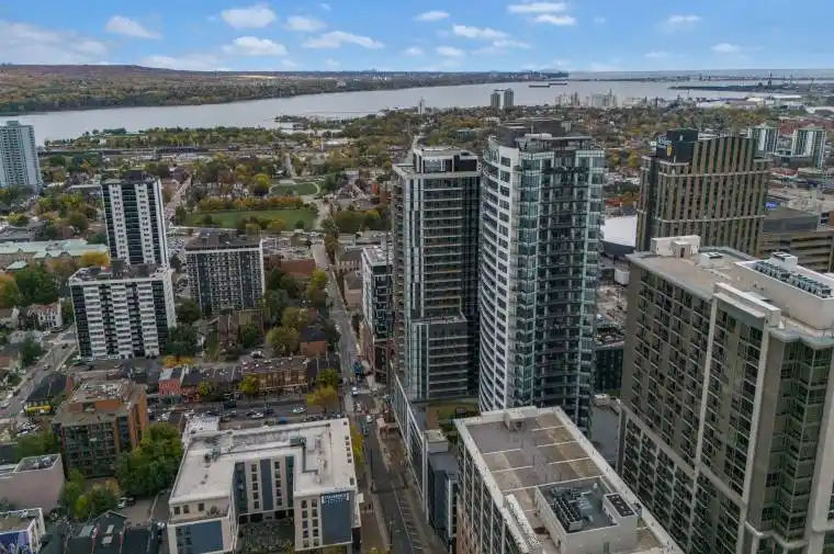 Experience upscale urban living in this beautifully designed, spacious, luxury apartment at 20 George Street, one of Hamilton’s most desirable addresses. This contemporary high-rise offers a perfect blend of sophistication, convenience, and comfort – ideal for professionals seeking a stylish home base in the city’s vibrant core. Step inside this spacious 923 squarefoot, 2 bedroom, 2 bathroom open-concept suite featuring floor-to-ceiling windows that flood the space with natural light and showcase breathtaking city and escarpment views. The sleek modern kitchen is equipped with stainless steel appliances, quartz countertops, plenty of cupboard space and elegant finishes throughout. You’ll feel like a king looking out at the stunning south-east views over the city and beautiful escarpment from two spacious balconies. Lots of storage space, in-suite laundry, and custom blinds. Unwind at the end of the day in the premium building amenities including a state-of-the-art fitness centre with yoga room, rooftop terrace with BBQs, party lounge with pool table, meeting room/boardroom, bike storage and more. Parking available for additional $150 per month or $200 per month plus hydro for EV. Live in the heart of it all! Steps to Hamilton’s vibrant restaurant and arts scene! You’re minutes to James St, shops and restaurants, Go station, St Joseph’s Hospital, McMaster University Downtown Centre, Jackson Square, FirstOntario Centre, the Art Gallery of Hamilton, 403/QEW highway access, and HSR Public transportation. Easy access to Bruce trail, Hamilton’s waterfalls and Harbourfront parks. Whether you’re a busy professional, medical resident, or executive seeking convenience and class, 20 George Street offers a truly elevated lifestyle in the Heart of Hamilton’s ambitious downtown core!
