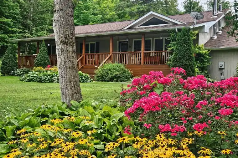 Set on 3.35 picturesque acres at the end of a quiet court on Whitebirch Rd, this impressive property combines privacy, natural beauty, and exceptional value. The landscaped grounds are adorned with mature trees, colourful gardens, and a charming full-length front porch perfect for enjoying your morning coffee. Inside, the over 1,500 sq. ft. bungalow features an airy open-concept layout with cathedral ceilings, an updated kitchen, and a dramatic floor-to-ceiling stone fireplace. Offering three spacious bedrooms, a private den/office, and a fully finished basement with a second kitchen, bathroom, large recreation room, and two additional bedrooms, this home is ideal for multi-generational living or rental income opportunities. Outdoor highlights include a fenced dog run, fire pit, large storage shed, riding lawn mower, and a 2-car garage with loft and workshop space. Relax and entertain with a hot tub and above-ground pool, all while enjoying the peaceful surroundings. Conveniently located minutes from Highway 115 and Millbrook’s shops and services, and within walking distance to the Millbrook Valley Trail, this property delivers the perfect blend of comfort, convenience, and tranquil country living. A Sellers’ Prelist Home Inspection is Available Upon Request by Buyer’s Agent.