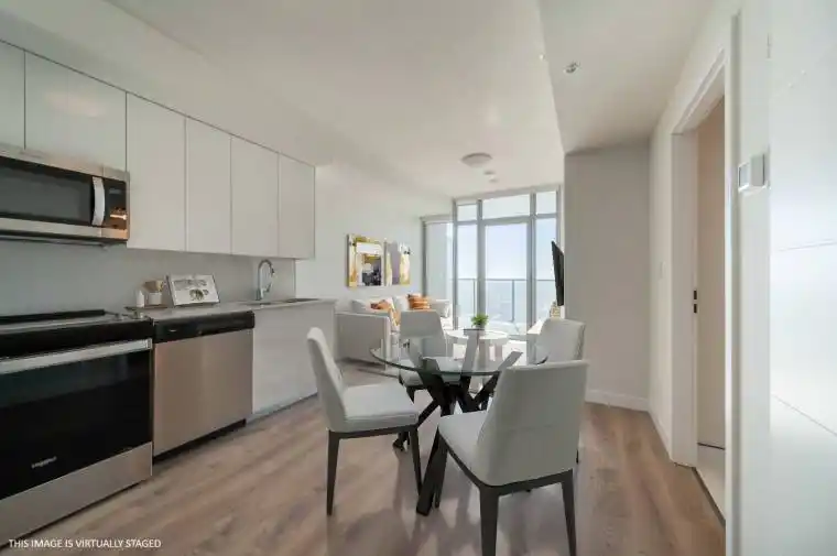 Step into luxury with this stunning south-facing penthouse, drenched in natural light and designed for modern living. This expansive 1-bedroom plus den layout offers two bathrooms, soaring floor-to-ceiling windows, and a sleek open-concept design. Enjoy a gourmet kitchen with stainless steel appliances and quartz countertops. The spacious bedroom and versatile den are perfect for a home office or guest space. Ensuite laundry adds everyday convenience, while the private balcony offers unobstructed views, ideal for morning coffee or evening sunsets. The building features a state-of-the-art fitness center, an elegant party room with catering kitchen, and secure bicycle storage. Located just minutes from the GO Train and public transit, this unit includes integrated parking and an oversized locker. It’s the best value for its size and features in the area, a rare opportunity you don’t want to miss. Integrated PARKING & Oversized LOCKER INCLUDED.