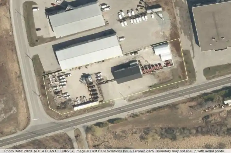 Building Size: 3,200 sq ft main floor + 1,040 sq ft mezzanine (860 sq ft finished). Parking: Gravel lot accommodates 8 vehicles at front; additional space on west and east sides. Office Area (770 sq ft)- Reception desk and waiting area at front entry- 2 offices, file area, 2-piece washroom- Carpet floors, painted drywall walls, 9′ ceilings, recessed LED lighting- Ceramic tile in washroom- In-floor heating and A/C, Staff Kitchen- Concrete floors, painted drywall walls, 9′ ceilings, LED lighting- In-floor heating- Access from office area or shop. Shop (2,430 sq ft)- Two bays with three roll-up doors: 2 at 12′ 14′, 1 at 14′ 14′ Concrete floors, painted drywall walls, 18′ ceilings, hanging LED lighting- In-floor heating with back-up overhead gas furnace- Includes: office (SE corner), parts room, 2-piece washroom, electrical room- Washroom finished with ceramic tile, 8′ ceilings, LED lighting. Air Exchanger, Ac, Oil Grid Separator, Alarm System, In Floor Boiler System. Mezzanine (1,040 sq ft)**Finished (860 sq ft):**- Office (200 sq ft): carpet, painted drywall, 7′ ceilings, LED lighting- 3-piece washroom and boardroom (660 sq ft): industrial vinyl flooring, painted drywall, 7’ceilings, recessed LED lighting. Unfinished (180 sq ft): – Storage Access: Front parking lot entry to office and shop; interior stairs to mezzanine. Security, fire/smoke alarm systems, , exterior lighting.