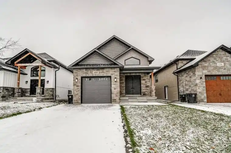 Step into this exceptional detached raised bungalow, where modern luxury meets effortless everyday living. Offering over 3,300 sq. ft. of beautifully finished space, this home is crafted to impress from top to bottom. The main floor features three generously sized bedrooms and two spa-inspired 3-piece bathrooms, each adorned with elegant porcelain tile. The heart of the home is the open-concept kitchen and dining area, showcasing custom quartz countertops, a striking waterfall island, and premium stainless steel appliances-perfect for both cooking and entertaining. Bright and inviting, the living room is enhanced by a soaring cathedral ceiling and opens onto a large covered composite deck with modern glass railings, creating an ideal indoor-outdoor retreat. A thoughtfully designed main-floor laundry room with a built-in pantry adds convenience without compromising style. The fully finished lower level provides outstanding extra living space, complete with three spacious bedrooms with above-grade windows, a chic 3-piece bathroom, and a large kitchenette featuring custom quartz counters. The expansive dining and family area is perfect for hosting gatherings or creating a private suite for extended family. Move-in ready and loaded with high-end finishes and carefully selected upgrades, this home is a rare find that truly must be seen to be appreciated.