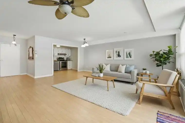 Welcome to this exceptionally large 2-bedroom, 2-bathroom condo offering outstanding value in a central location close to all amenities, transit, shopping, and dining. This bright and airy unit features wall-to-wall windows and two walk-outs to a 40-foot balcony overlooking a beautifully landscaped courtyard and gardens perfect for relaxing or entertaining. Enjoy the convenience of being on the same floor as premium building amenities, including an indoor swimming pool, workshop, and laundry facilities. With generous living spaces, natural light, and a functional layout, this condo is ideal for downsizers, first-time buyers, or anyone seeking space and comfort in a well-maintained building. condo fees include water, Cable and Internet. Please note the blue tarps are temporary – maintenance underway