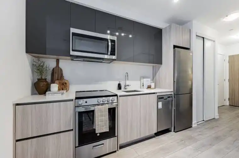 Bright, like-new condition 2 Bed/2 Bath with parking in versatile location to walk, bike, transit or drive! Overlooking peaceful courtyard with parkland greenery in the distance. Peaceful nature walks, bike rides & dog park at doorstep with choice of Northview and Downsview Parks and trails. <5 minute drive to Downsview subway (to Union in <30 mins), No Frills & Metro grocers, shops & restaurants. <10 min drive to Yorkdale Mall, Pearson International Airport in <15 mins. Suite features efficient layout that feels larger with benefit of lower maintenance fees. West view is bright, green & peaceful overlooking trees. Finishes include modern light materials including quartz kitchen counter, stainless steel kitchen appliances, front-loading washer/dryer and laminate floors throughout. Versatile split plan allows for privacy/sound barrier between bedrooms and bathrooms close by. Amenities include 24 hr concierge, fitness centre, lounges for co-working, entertaining with kitchen/dining & outdoor patio! Enjoy living surrounded by parks, transit and conveniences nearby. Offers welcome anytime.