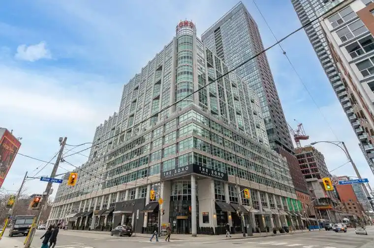 1 bedroom 1 bath Condo above a 5-star Boutique Soho Metropolition Hotel in the Entertainment District connected to Morretti Cafe, Restaurant & Bar, steps to the path, Financial and Fashion Districts, Rogers Centre, Cn Towers, Shopping, with 24 hrs TTC at the doorstep-easy access to Gardiner. Amenities include a Fitness Centre, Steam room, indoor pool-24 24-hour concierge with a Rooftop terrace with BBQs. Walk Score 100!