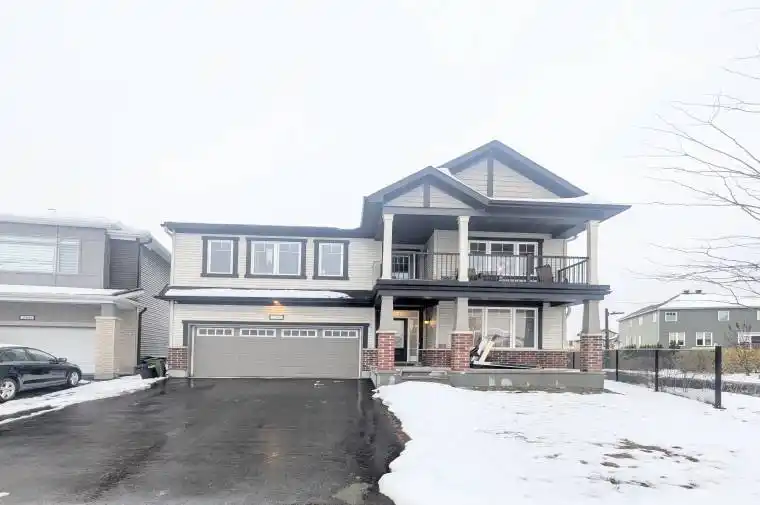 Unique 4 bedroom, 1 den, 2.5 bathroom detached home fronting an impeccable park in the prime Abbottsville Crossing neighbourhood of Stittsville! This beautifully designed home offering an impressive blend of style, comfort and functionality. The main floor showcases generous living spaces with high-quality engineered flooring, modern lighting and plenty of natural light. The layout includes a multi-purpose den, a formal dining room and a stunning open-concept area at the back of the home featuring the kitchen, eating area and a huge living room with a gas fireplace. The modern kitchen features massive counter space and island, upgraded cabinetry and exquisite stainless steel appliances. Upstairs, the spacious primary suite includes two walk-in closets and a bright 4-piece ensuite with separate soaker tub and standing shower. Three additional well-sized bedrooms, a charming reading nook, laundry room and a covered balcony with views of the park complete this level. Amazing Location – Close to great schools, transit, Trans Canada Trail, parks, shopping and much more!