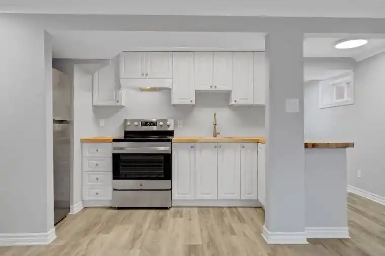 This bright and spacious, updated two-bedroom unit is located on the lower-level of a triplex on a quiet residential street. Centrally located in close proximity to amenities and shopping on St. Laurent Blvd, St. Laurent Shopping Centre, schools, transit, light rail, and the Aviation Pathway leisure trail network. This unit features an open-concept living room and kitchen, enhanced by oversized windows for excellent natural light. The kitchen has been recently updated with new butcher block countertops, sink and faucet, and stainless steel appliances (fridge and stove). The unit includes new lighting, fresh paint, and new vinyl plank flooring throughout, including both bedrooms. The primary bedroom features a walk-in closet. Enjoy access to the shared backyard patio and landscaped yard. Rent includes heat and water. Tenant is responsible for hydro. Shared laundry facilities conveniently located next to the unit. One parking spot is available for rent at $50/month. A second spot may be rented for an additional $50 per month. Unit is available for immediate occupancy. This is a smoke free home.