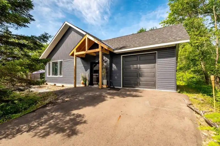 Welcome to this stunning 2021-built bungalow, a true gem offering 3 bedrooms and 2 bathrooms. Designed for modern living, its open concept layout seamlessly connects the living, dining & kitchen areas, perfect for gatherings or easy everyday flow. This home was built with efficiency in mind, featuring a slab-on-grade foundation with in-floor heating, smart use of natural light, and thoughtful construction that helps keep utility costs low year-round. Garden enthusiasts will love stepping through the garden doors to a picturesque patio with pre-established veggie beds ready for planting. An attached 1-car garage with inside entry adds convenience on chilly days, while a hidden bonus awaits behind the living room bookshelves, a secret kids’ hideout with a play zone, climbing wall & loft hangout. Soaring 10-ft ceilings elevate the sense of space, and the inviting primary suite includes a beautiful ensuite & walk-in closet. One of the guest bedrooms features a built-in loft-style bed to maximize floor space. The chef’s kitchen shines with butcher block counters, an oversized island capped with quartz & impressive storage, including a generous walk-in pantry. Less than 1 km from Tom Thompson Park on scenic Forest Lake and just minutes to South River’s charming downtown, this home delivers modern comfort, energy-efficient living & everyday convenience in an exceptional package.