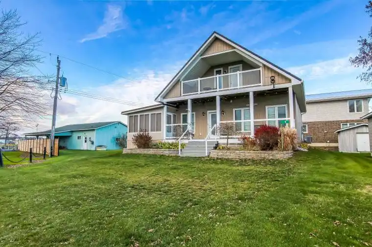OUTSTANDING WATER VIEW PROPERTY ON ONTARIO’S SOUTH COAST! This exceptional home truly has it all. Sweeping panoramic views of Lake Erie’s Long Point Bay in front and tranquil vistas of the inland waterways behind. A rare feature, the on-site double boathouse accommodates two 24′ boats. Step inside and you’re greeted by an abundance of natural light pouring into the open concept living space. The cozy living room features a wood burning stove, perfect for chilly winter evenings. The updated maple kitchen showcases new stainless steel appliances, quartz countertops, a ceramic tile backsplash, and a designer grey center island. The generous dining area flows seamlessly into the three season sunroom, a bright and beautiful addition completed in 2014 that adds 265 sq. ft. of extra living space. This room is ideal for hosting guests and allows easy access to the elevated pressure treated deck. Back inside, the main floor also includes a spacious bedroom with a combined 4pc bath/laundry. Upstairs, the owner’s suite offers ample storage, twin attic closets, a full-size closet, and a private bistro deck with breathtaking lake views. A third bedroom and an additional 3pc bath complete the upper level. A 3/4 height basement provides excellent off season storage. The oversized 46′ x 28′ double boathouse offers plenty of room for multiple large boats. An additional insulated storage area (27’3″ x 15’9″) with a 2pc washroom presents potential for a mancave, workshop, or continued seasonal storage. Recent upgrades include: Metal Roof (2019), Appliances (2019-2023), Kitchen Updates (2021), Bathroom Counter & Fixtures (2020), Water Heater (2019), Composite Deck & Railing (2022). Discover a property that blends beachside relaxation with boating adventure for a a perfect summer retreat in the charming port community of Turkey Point. Come and experience it for yourself!