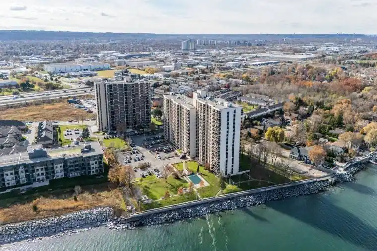 Welcome to waterfront living at 500 Green Road in Stoney Creek. This beautifully maintained 1-bedroom + den suite offers 911 sq ft of spacious, open-concept living in a building known for its pride of ownership. The versatile den functions perfectly as a second bedroom, complete with a built-in Murphy bed that allows the space to transition easily from an office or flex area to a comfortable sleeping space.This layout features large windows throughout, filling the home with natural sunlight and providing beautiful views of the water from your balcony. Enjoy the convenience of all utilities included in the maintenance fees and the comfort of underground parking. Residents can enjoy an outdoor pool with a panoramic view of the lake. Other amenities include a gym, library, BBQ area, sauna, hot tub and squash court. This building is literally steps from the water which offers unmatched tranquility and daily waterfront walks right at your doorstep. Ideally located with quick access to the QEW, parks, trails, and nearby amenities.Don’t miss your chance to own a bright, spacious waterfront unit in one of Stoney Creek’s most desirable buildings.