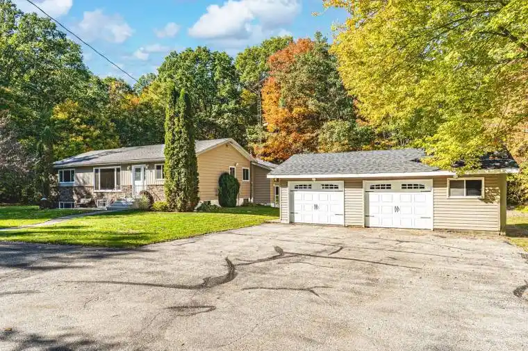 34-ACRE COUNTRY RETREAT WITH AN INGROUND POOL, IN-LAW POTENTIAL & LIMITLESS POSSIBILITIES! Set on an incredible 34-acre property surrounded by towering trees and peaceful natural beauty, this sprawling bungalow offers true country living with endless room to roam, complete with manicured trails perfect for walking, biking, or snowmobiling. Embrace a lifestyle defined by nature and tranquillity, just minutes from Georgian Bay’s beautiful beaches, local parks, and a grocery store, with Wasaga Beach only 15 minutes down the road. The property makes an unforgettable first impression with a circular driveway offering parking for more than 20 vehicles, a detached double garage, multiple sheds, and plenty of space for a future shop. The expansive backyard features an inground pool surrounded by a generous patio, perfect for outdoor entertaining or quiet relaxation. Over 3,200 finished square feet, including more than 1,850 on the main level, provide an abundance of living space for families, multi-generational living, or those dreaming of a country retreat. The large kitchen features white cabinetry, built-in appliances, a centre island, and an open connection to the formal dining room, making it ideal for hosting gatherings. The bright living room overlooks the treed front yard, while the family room features a cozy wood fireplace and a walkout to the backyard. A separate sun-filled hot tub room with a fireplace offers an additional sliding door walkout leading to the pool and patio area. The finished basement extends the possibilities with in-law potential, complete with a second kitchen, living room, den, rec room, two bedrooms, and a full bathroom. Whether you envision a peaceful family haven, a multi-generational escape, or simply a property with room to grow, this exceptional #HomeToStay is filled with opportunity and ready for your personal touch to make it truly yours!