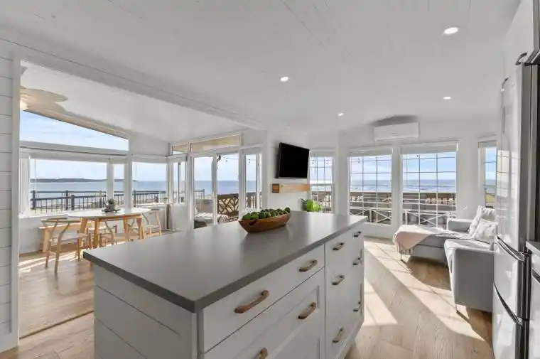 Welcome to 6 Water’s Edge! This beautifully renovated lakefront cottage is truly move-in ready and perfect for anyone looking to enjoy effortless waterfront living. AMAZING INCOME POTENTIAL OF $3000+ PER WEEK! Offering 2 bedrooms, a fully updated bathroom, and a bright, open-concept kitchen/living/dining area, it’s the kind of place where the whole family will love spending time together. The kitchen features an island, stainless-steel appliances, a modern hood fan, and a sleek black sink and faucet. The dining area-complete with a bar fridge-lets you enjoy meals al fresco by the lake or inside in the comfort of a bright, airy space. The living room is finished with stylish shiplap and a floating wood mantle for a relaxed, modern cottage vibe.After a sun-soaked day on the beautiful beach just steps away, unwind under the stars by the stone-paver lakeside fire pit, or take in the expansive water views from the extended back deck. The large covered front deck sets the tone the moment you arrive-welcoming, comfortable, and built for making memories.Located just 90 minutes from Toronto and 20 minutes from Niagara Falls, Sherkston Shores spans 560 acres of stunning grounds with 4 km of sandy beachfront, giving you endless opportunities to explore, relax, and enjoy the outdoors.With features like a furnished interior, mini-split heating/cooling system, open floor plan, walk-in shower, washer/dryer hookups, kitchen island, and of course the premium waterfront site, resort life at The Shores is truly calling.