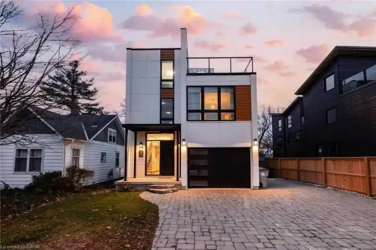 Welcome to 26 Huron Street, Grand Bend-a modern coastal luxury home offering 7 bedrooms, 5 bathrooms, and an unbeatable lifestyle just a one-minute walk to the beach, complete with water views from the upper balconies. Wrapped in contemporary elegance, this 2022 build greets you with an oversized foyer flooded with natural light, soaring 20-ft ceilings with a view of the catwalk above, and a striking floating hardwood staircase encased in glass, setting the tone for the refined style throughout. The main floor features a two-piece powder room, single-car garage ,and a beautifully designed open-concept living space highlighted by a chef’s kitchen with waterfall marble-quartz counters, matching backsplash, gas stove, stainless steel LG appliances, undercabinet lighting and a hidden hood range. A gas fireplace, floor-to-ceiling windows with automated drapery, a bar/coffee nook with mini fridge, and a built-in desk create an atmosphere that is both luxurious and effortlessly comfortable. The fully fenced backyard extends the living space with a spacious deck, hot tub, and gas BBQ hookup-perfect for relaxing after a day by the water. The finished basement offers two bright bedrooms with egress windows and a three-piece bathroom. The second-floor features three bedrooms, convenient laundry, a three-piece bath, the serene primary suite is complete with floor-to-ceiling windows, a walk-in closet, and a spa-inspired ensuite with dual sinks, stand-up shower, and freestanding tub. The top-level loft adds even more versatility with two additional bedrooms, a cozy living area, a three-piece bath, a window that opens into a balcony, plus an additional balcony with a view of the lake. Thoughtfully designed and bathed in natural light, this home blends luxury, comfort, and location-just steps from the beach and moments from Grand Bend’s vibrant amenities.