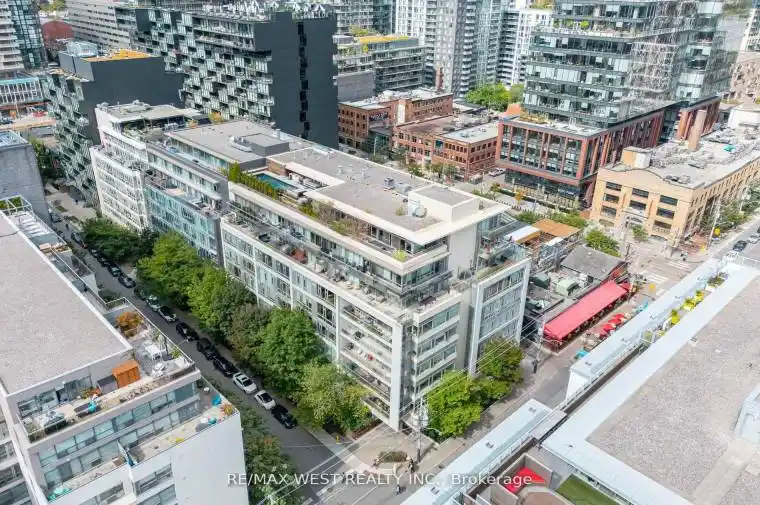 Stylish Loft with Private Terrace in Vibrant King West. Artful, Loft-Style Living In Downtown Toronto. Discover hardwood floors, soaring 10-foot ceilings, and floor-to-ceiling windows that open onto a 287-sq.ft. oversized terrace with stunning skyline views and custom patio tiling. The spacious bedroom offers comfort and privacy, while a custom-built hallway closet (2024) adds smart storage. Enjoy the convenience of gas BBQ hookups for outdoor entertaining. Suite 212 at 66 Portland Street is nestled in a boutique building in the heart of King West, steps from parks, shops, and the TTC.