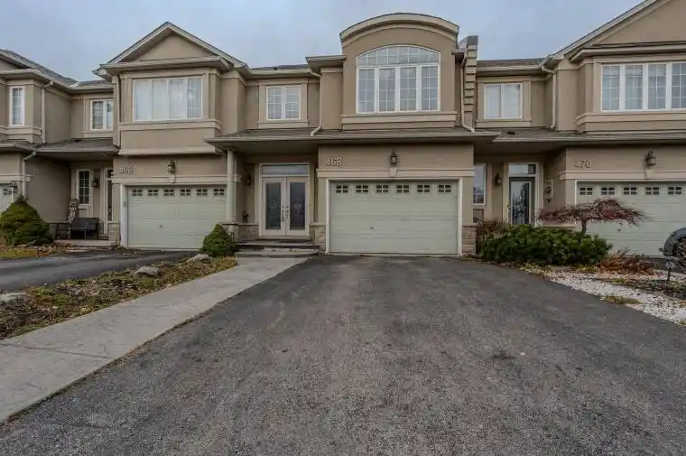 Welcome to 468 Stonehenge Drive, Free Hold with road maintenance , a beautifully Freehold appointed townhome nestled in the prestigious Ancaster Meadowlands community. This spacious carpet free offer 3 bedrooms, 2+2 bath residence offers an open-concept main floor with rich hardwood flooring, perfect for family living and entertaining alike. The fully finished basement includes Recreational and a bathroom, providing versatile space ideal for a guest suite, home gym, or media room. Step outside to enjoy a fully fenced backyard, offering privacy and room to relax or entertain. Located just minutes from top-rated schools, upscale shopping, fine dining, scenic trails and easy access to Alexander Lincoln and HWY 403.