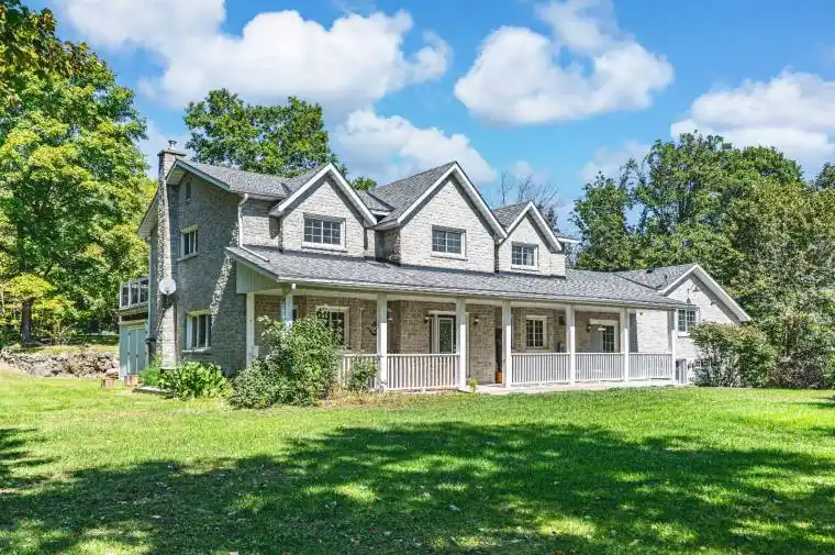 WELCOME TO YOUR OWN PRIVATE 3+ ACRES OF MUSKOKA PARADISE WITH A 1400 SQ FT HEATED GARAGE/SHOP, RESORT-STYLE OUTDOOR LIVING, & RUSTIC CHARM! This 3+ acre retreat showcasing a Muskoka-style landscape with rock outcroppings, abundant wildlife, and a private forested EP backdrop, all located just 5 minutes from Hwy 400 and the Oak Bay Golf Club, under 10 minutes to marinas, and close to all everyday essentials. Enjoy year-round recreation with Mount St. Louis and Horseshoe Valley Ski Resort less than 30 minutes away, while Orillia, Barrie, and Midland are within 35 minutes for urban amenities. The 2-storey brick home boasts dramatic rooflines, stamped concrete walkways and steps, and a welcoming full-width covered front porch. The 1,400 sq ft insulated and heated garage is a standout with 13+ ft ceilings, radiant heat, compressed air lines, a paint spray booth, overhead storage, office and loft space, and multiple access points including dual garage doors, an oversized roll-up rear door, a side man door, and interior entry. Outdoor living shines with a patio and screened pergola, a powered tiki bar and firepit, a two-tiered deck with covered storage below, and a garden shed with a wood storage overhang, all complemented by a 5-zone irrigation system. The open kitchen, dining, and living area features a walkout to the back patio, plus a pantry, family room, and a renovated bathroom with heated floors, granite counters, and a steam shower. The upper level offers 4 bedrooms, including a primary retreat with a walk-in closet, fireplace, and a walkout to the deck, paired with a second full bathroom with heated floors and granite counters. Shiplap-style ceilings with faux wood beams add character, while thoughtful upgrades include vinyl and tile flooring, modern door hardware, fresh paint, and updated electrical. From the striking exterior to the thoughtful interior finishes, this one-of-a-kind #HomeToStay promises a life of natural beauty, convenience, and endless enjoyment.