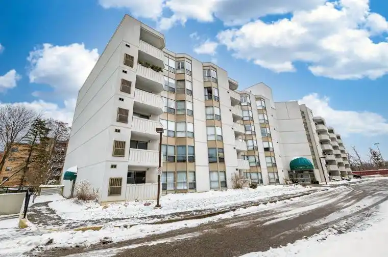 Welcome to Prestigious Cameo Terrace! Rarely offered ground-level suite in exceptional condition. This immaculate unit features impressive double door entry opening to welcoming foyer. Spacious living and dining room with beautiful flooring and large windows with California shutters that fill the home with natural light. Step out to your private balcony, perfect for morning coffee or evening relaxation.The updated kitchen offers excellent storage and functionality, and the convenience of ensuite laundry adds to the ease of condo living. The massive primary bedroom includes a 3-piece ensuite with a walk-in tub, ideal for comfort and accessibility. A large second bedroom with double mirrored closet and a second full 3-piece bathroom make this home perfect for guests or multi-generational living. Residents enjoy fabulous amenities, including a party room, exercise room, indoor pool, and sauna, enhancing the lifestyle offered at Cameo Terrace. This unit also includes one owned underground parking spot with fabulous location within steps to the interior access to elevators, plus exclusive use of a locker for extra storage. The building is planning beautifully renovated hallways in the coming months, further elevating this warm and well-managed condo community. Located close to Fairview Park mall and other retail stores, restaurants, highway, parks and more! A wonderful opportunity in a highly desirable building. Nothing to do but unpack and enjoy!