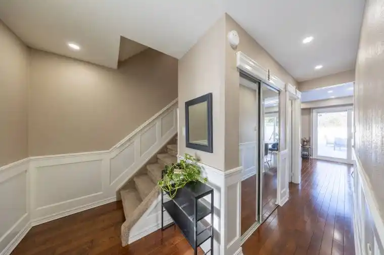 Welcome to 50 Goskin, an end-unit freehold townhouse offering great curb appeal with its beautiful pathway and landscaped frontage. With approximately 1,800 sq. ft. of finished living space, this home features a metal roof, maple hardwood on the main floor, laminate flooring, a primary bedroom with a walk-in closet, and a chef-inspired kitchen with quartz counters, stainless steel appliances, soft-close cabinetry, and pot lights.The home also includes finished basement with a separate side entrance, providing in-law suite or rental potential.A 9 ft patio door opens to a large deck, ideal for entertaining and outdoor enjoyment. **An approved shed offers ample additional storage with electricity and 2 levels.**