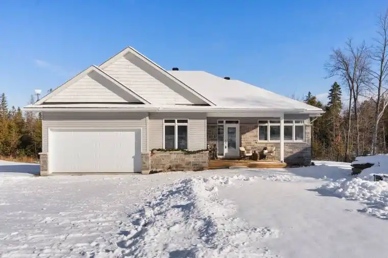 Located in the desirable community of Calabogie, just steps from the Calabogie Highlands Golf Course and a short drive to the Calabogie Motorsports Park, this home is a car enthusiast’s dream! This immaculate 3 bed, 2 bath bungalow was built in 2023 by Mackie Homes and features high-end finishes throughout. The open-concept kitchen and dining area are highlighted by stunning quartz countertops and a floor-to-ceiling stone gas fireplace, creating a warm and inviting space to gather. The primary bedroom offers a luxurious ensuite and a walk in closet. 2 additional large bedrooms are offered on the main floor as well as main floor laundry station located centrally to the bedrooms. The fully finished basement offers additional living space complete with a wood-burning fireplace and a walk-out with access to the backyard( no rear neighbours) . In addition to the attached garage, this property boasts a newly built 3-car detached garage featuring 10 ft high doors and a 9000 lb hoist (included in the sale)perfect for working on vehicles or storing large equipment. Below the 3 car garage is access to a lower-level garage bay, ideal for storing recreational toys, tools, or lawn equipment. Enjoy the perfect balance of comfort, functionality, and lifestyle in one of Calabogie’s most sought-after locations. Whether you are looking to spend more of your days at the golf course, the race track, the beaches, hiking the incredible trails, ATVing or skiing- Calabogie’s 4 seasons of recreational fun provides opportunities for everyone!