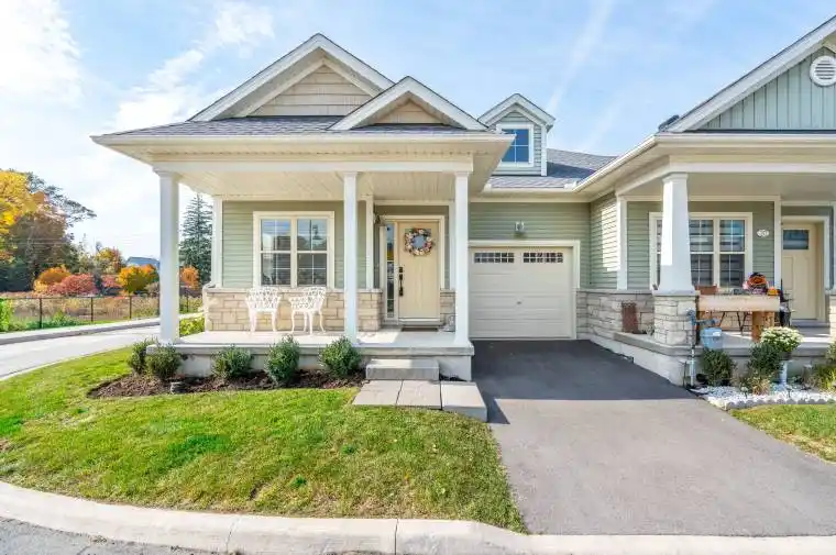 Welcome to 22 South Coast Circle in The Shores at South Coast Village-a beautiful, master-planned community by Marz Homes, perfect for those seeking a vibrant and low-maintenance lifestyle! This bright and airy 2-bedroom, 2-bathroom, 1220 sq. ft. bungalow end unit boasts an open-concept layout designed for modern living. Step inside to find a sunlit living and dining area with large windows and 9-foot ceilings. The stylish kitchen features quartz countertops, a spacious island, and an under mount sink, making it both functional and elegant. Enjoy seamless indoor-outdoor living with a walkout to your private, west-facing yard-ideal for catching beautiful sunsets. The spacious master suite is a serene retreat, complete with a walk-in closet and an ensuite featuring a custom-tiled shower. The unfinished basement offers potential for a recreation room, additional bathroom, and ample storage space. The Shores community offers exclusive amenities, including a clubhouse with a kitchen, an outdoor pool, and multipurpose sports courts (all currently under construction). Situated moments from Lake Erie, Bay Beach Park, and Ridgeway’s quaint shops and eateries, this prime location ensures every convenience is within reach. Plus, as a land condo, maintenance is made easy with services covering snow removal, lawn care, garbage collection, and future access to all clubhouse amenities.