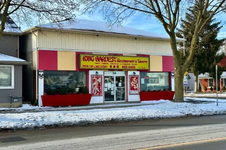 LOCATION! LOCATION! LOCATION! Exceptional opportunity to own a well-established restaurant business and freehold commercial property at a prime high-visibility corner location in downtown St. Catharines. King Harvest Restaurant & Tavern has been successfully operating for over 34 years with a strong, loyal clientele. This outstanding corner property offers maximum exposure with floor-to-ceiling glass on three sides, capturing continuous traffic along Lake Street and generating steady walk-in business. Features include a mezzanine level for additional usable space and a separate side entrance for convenient access. Zoned M1 zoning is flexible – it supports both commercial and residential in the same zone, encouraging active streetscapes and mixed-use buildings. It’s commonly used in areas transitioning from purely residential to a more walkable urban character. offering excellent flexibility for owner-operators and investors. Extras: Price includes property and business, 64-seat capacity, liquor license, and all owned equipment and fixtures. Recently updated commercial kitchen with 16-ft hood fan and suppression system, two electrical panels (100 amps & 200 amps), all in excellent working condition. Located in a high-traffic area close to QEW and Niagara Falls, this is a rare turnkey investment with endless potential. Long-time owner retiring. Motivated Seller – do not miss this exceptional opportunity.