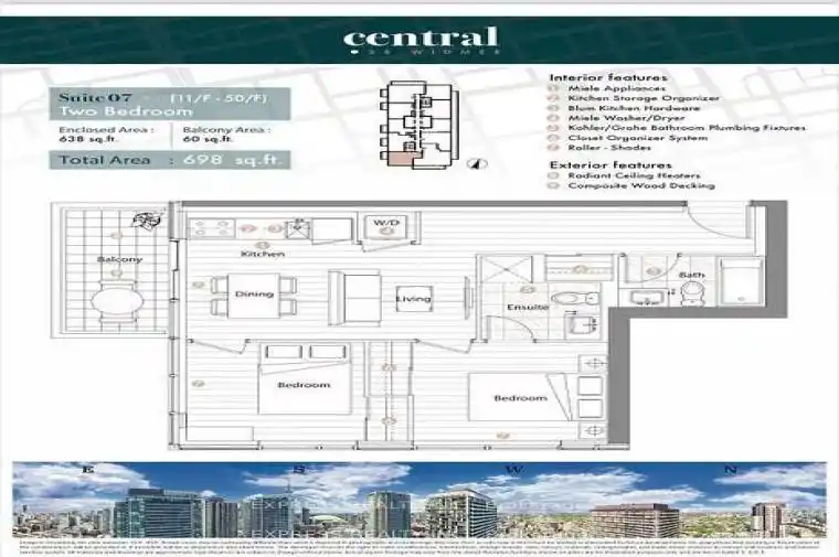 Central By Concord, Located In The Heart Of The Entertainment District And Toronto’s Tech Hub, This Sun-filled Corner unit in Spacious & Efficient 2Bedroom layout w/Master Ensuite Bathroom! Integrated Miele Appliances & Premium luxurious finishes throughout with no expense spared! 100% Wifi connectivity in common areas throughout the building, including elevators & parking! Calacatta Kitchen Backsplash And Bathroom, Grohe Fixtures, Built In Closet Organizers And Heated Fully Decked Balcony. steps to Public Transit, World Renowned Concert Halls, Glamorous Theatres, Tiff Lightbox, World-Class Restaurants, Parks, Shops, Path And St Patrick Ttc And Financial District.