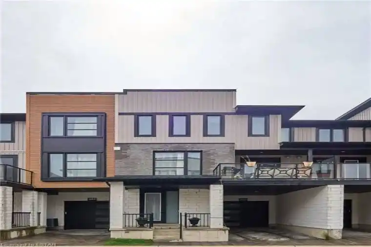 FOR LEASE – Battery Park, Hyde Park. Modern 3-storey townhome (2018) offering approx. 1,803 sq. ft. of living space. 5 bedrooms, 4 bathrooms, open-concept layout with neutral décor, quartz kitchen with stainless steel appliances, and balcony off the kitchen for year-round BBQs. Upper level features 3 bedrooms including primary with ensuite. Main-floor bedroom ideal for office/guest use. Rare fully finished basement with additional bedroom and 3-pc ensuite. 2-car parking. Available furnished or unfurnished. Bus stop 5 minutes away. Close to shopping, schools, Western University, and Downtown London.
