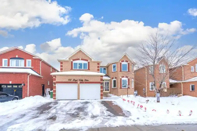 Welcome to 106 Royal Valley Drive in Caledon! This impressive home boasts over 3,500 square feet of above-grade living space, featuring 5 spacious bedrooms and 4 bathrooms. Ideally located just minutes from Highways 410 and 10, this property combines convenience with luxury. Step into the expansive family room and open-concept kitchen, perfect for entertaining. The gourmet kitchen is outfitted with granite countertops and offers two walkouts to a beautiful patio overlooking a private orchard. Retreat to the 500-square-foot master suite with a cozy sitting area and a luxurious, modern 5-piece ensuite featuring a glass-enclosed, multi-jet shower and separate soaker tub. Each additional bedroom is connected by a shared 4-piece ensuite, making this home ideal for large families.
