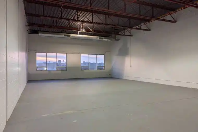 Well-priced, bright and very clean industrial style commercial space in an attractive property located in the heart of the Eglinton / O’Connor industrial node. Efficient clear-span rectangular space approx. 32 ft x 81 ft with approx. 17 feet clear ceiling height, polished concrete floors and large operable west facing windows. Roll up shipping door (8 ft.) opening to a wide common corridor with a short route to convenient common truck level shipping. LED lighting helps to lower tenant hydro costs. Dedicated efficient HVAC. 6OOV 3 phase power. Private 2 piece washroom and plumbing roughed in for kitchenette or other use. Hydro and gas utilities paid by tenant. Abundance of free surface parking. Many light industrial uses accepted, but no food production, woodworking, heavy industrial, or automotive. Very well suited to artist or designer studios, film / TV / content production, educational uses and for businesses needing clean open space for their expanding office requirements. Total monthly cost before HST, hydro & gas is $5,470 + HST + gas utility + hydro utility.