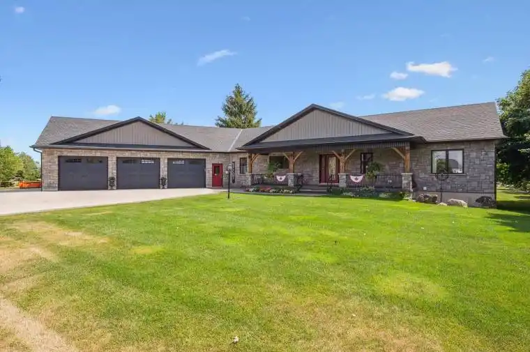 No design element was overlooked and no expense was spared when the current owner custom built this amazing country estate BUNGALOW in 2019 – including an absolutely spectacular three bay 38.8 ft by 48.6 ft DETACHED SHOP with loft living space (great for an AirBnB). And all set on a beautifully landscaped 1.3 acre lot featuring 55 trees and landscape lighting. If you are a discerning buyer looking for a property that is a cut above, this is one you must come and see to appreciate it. Whether you have a large car collection, lots of toys (including RV’s), or need a property for your home based business – this one can handle it all. The home itself is done top to bottom – offering over 2950 sq ft of thoughtfully designed living space with finished basement level – 4 bedrooms and 4 bathrooms. Second kitchen on the lower level. Great for extended family or out of town guests. There are far too many special features to list here – but we will highlight a few. First – it’s a country property with natural gas – that’s a bonus! There is fibre internet too. Covered front porch and an expansive covered rear deck for entertaining. Oversized triple car attached garage with walk up from basement level. Separate utility shed out back. The shop has in floor heating – and even an RV hook up. It’s the little details here that put this property over the top. Located on a paved road a short drive to all the amenities you need – and adjacent to a small enclave of other high end country estate homes.