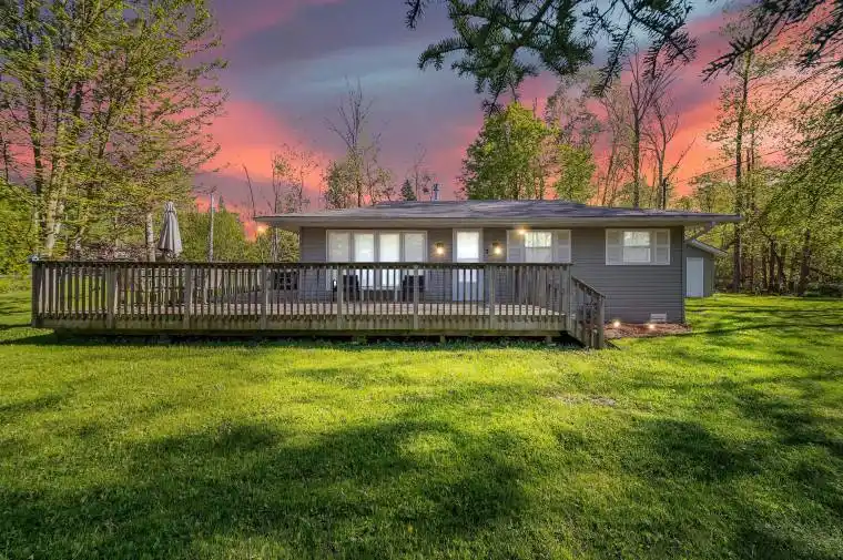 This well-maintained 3-bedroom, 1-bath winterized cottage offers the potential to be a cozy full-time residence. Set on a spacious corner lot, it boasts an expansive wrap-around deck facing south and north, providing morning sun and afternoon shade. Inside, you’ll find all bedrooms are generously sized, with two featuring closets. Recent updates include new windows, doors, and siding (2006), a 200 amp breaker panel (2008), a new deck (2009), an updated bathroom (2018), and refreshed flooring and kitchen (2021). Conveniently located just a few kilometers from the heart of Sauble Beach, this property blends modern comforts with a charming, outdoor lifestyle. REMARKS MUST RELATE DIRECTLY TO PROPERTY200 amp. breakers. Roof deck 2009. Windows/doors/siding done in 2006. Flooring 2021, Bathroom 2018, Kitchen 2021. New Septic was installed in 2022.. Municipal inspection approval report available from 2015. Short Term Rental income is $30-35k annually and property is taking care of it’s expenses easily.
