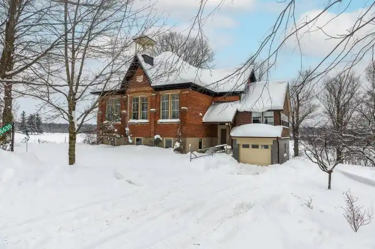 2 storey brick schoolhouse on a paved road with country views. Modern amenities and upgrades enhance the original features of this home with nearly 3,000 square feet of living space. The open living area, including kitchen and dining measures 26×31’3 with high ceilings and stylish windows providing lots of natural light. There are 3 bedrooms on this level, one being a little smaller that was the original infirmary. The full bath features a shower and a claw foot tub. Walk-out to the back deck with sunset views. The lower level is completely finished and is almost entirely above-grade. Featuring a family room, three bedrooms, a modern 4 piece bath and laundry room, there is also a workspace and walkout to the hottub. With forced air propane, a/c, in floor radiant on the lower level, heat pump and wood-stove fireplace, the home is well prepared for any season. An attached garage was built in 2008 providing additional storage, an ev charger. Set-up for in-floor heat (not connected). Convenient location is about as central to all things Grey County as it gets: Meaford 15 minutes, Blue Mountain 25 minutes, Markdale 15 minutes.
