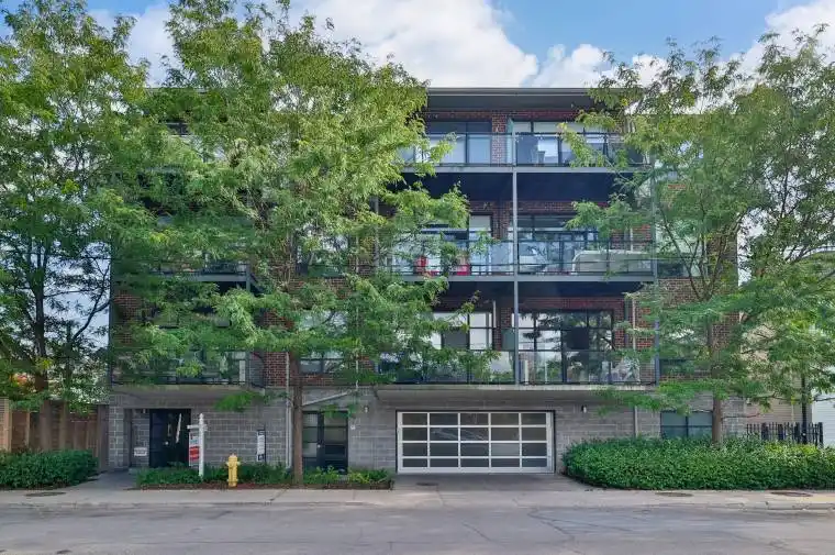 Designer top floor loft in sought after boutique building. This stunning, sundrenched 2 bed, 2 bath home blends loft living with modern elegance. Soaring 10-ftceilings, oversized windows, and wide-open sunny south and west views create a dramatic sense of space and light. Quiet southern exposure away from the bustle of the front door. The open-concept layout is anchored by a sleek, custom built chefs kitchen featuring a Cesar stone waterfall counter and matching backsplash, illuminated feature cabinet’s, high end stainless steel appliances and unparalleled cabinet space. There’s even a walk-in pantry/laundry room! Built in custom closets throughout are designed for maximum storage and comfortable living. Tucked inside an exclusive 15 unit building, this unit offers rare privacy and a distinctly upscale vibe with only one neighbor. Skip the stairs without a long wait for the elevator. Enjoy dramatic skies as the sun sets and catch a glimpse of long weekend fireworks from the 108 sq foot south facing patio. Every detail is curated from the airy layout to the modern fixtures making it the perfect backdrop for comfortable urban living. Set in one of the city’s most dynamic and creative neighborhood’s, you’ll be steps from parks, top cafes, shops, services and restaurants. Its a minute walk from the Queen streetcar, and provides quick access to downtown, the Lakeshore and DVP, making commuting a breeze. And its close to the future Ontario Line Leslieville / Riverside station. Home to professionals, families and pets, its part of a warm and welcoming community. Don’t miss out on this rarely available opportunity to get into this exclusive building. Secure, covered, garage access surface parking and locker included Newly refinished hardwood throughout