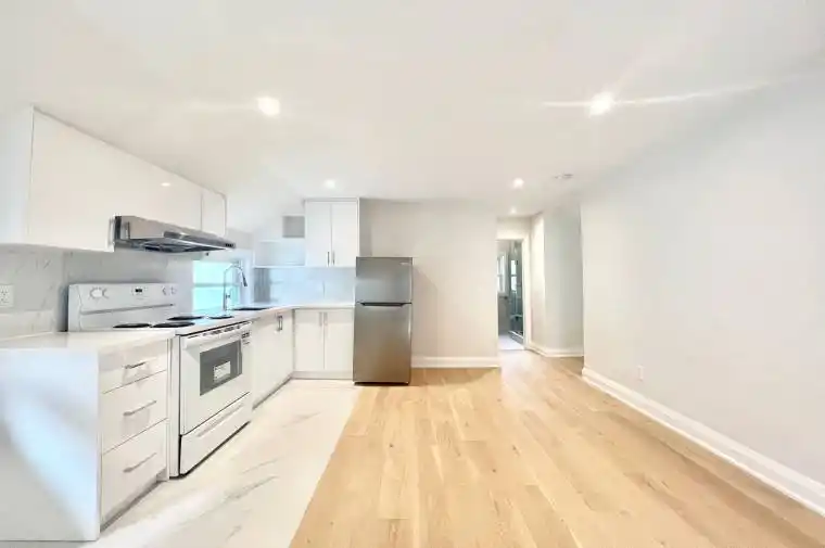 Just a few minutes walk to Victoria Park Subway Station. Totally renovated Two Bedroom unit with 1 Car parking included, on the 2nd floor of a Detached Home located on a quiet one way street. Entire unit renovated and painted 2 years ago. Open Concept layout. Spacious Primary Bedroom with a full wall of closet for all your clothes and storage needs. 2nd Bedroom has a tandem room with lots of windows that can be used as a great office or den. Kitchen has quartz countertop. Pot lights throughout living area. Shared Laundry in the building. Central Air Condition. Walking distance to the shops, Metro Supermarket, Shoppers Drug Mart, Banks, and conveniences on the Danforth.