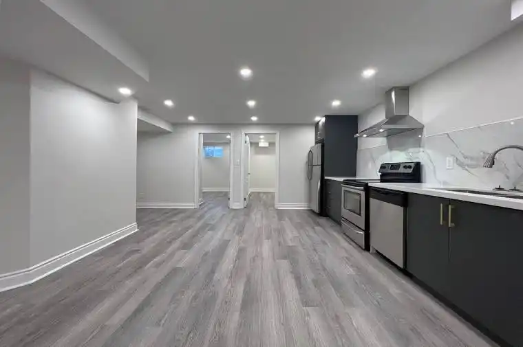 End Unit Townhouse Basement With Separate Entrance. One Of The Largest Lots For A Townhouse Home In The Same Community. Laminate & Pot Lights Throughout. Modern Kitchen With Quartz Counter, Stainless Steel Appliances & Backsplash. 2 Bedrooms With Closet. Spacious Den With Window. Separate Laundry In Bathroom, Glass Shower. 1 Parking On Driveway. Interlock Walkway. Walking Distance To School, Park. Minutes To Hwy 404, Costco, Shops, Restaurants. Tenant Pays 1/3 Of Utilities.
