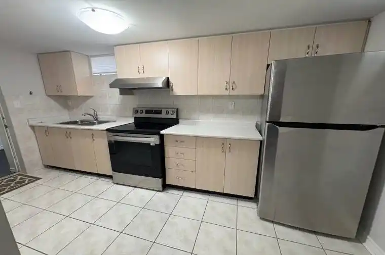 Welcome to this bright and welcoming 1-bedroom, 1-bathroom basement apartment with its own private entrance, perfectly situated near Martingrove & Hwy 7. The unit features newer flooring, a spacious living room, and a large bedroom with a double closet, offering a comfortable and functional layout. The kitchen includes a Stainless steel fridge and stove; washer and dryer (all just 2 years old). making move-in effortless. Utilities are included (cable and internet are extra), and shared laundry is conveniently available on-site. This quiet, well-maintained home provides privacy and a peaceful retreat, while remaining close to transit, parks, shopping plazas, and Hwy 7 for easy commuting. Available immediately with a minimum 1-year lease. Please note, there is no parking.